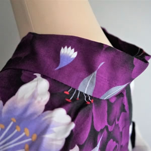 絹素材の浴衣は、高級感と美しい光沢があります。絹は天然の繊維であり、その滑らかな肌触りと優れた吸湿性、放湿性が特徴で、暑い季節でも身体を快適に保つことができます。
