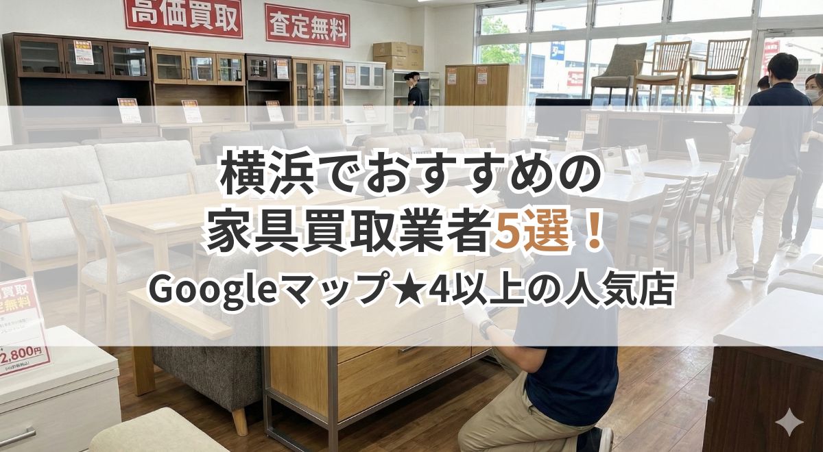 そこで本記事では、横浜市で家具を手放すためのおすすめ買取業者(Googleマップ評価★4〜)を厳選。万が一、値段がつかなかった場合の処分方法まで解説します。