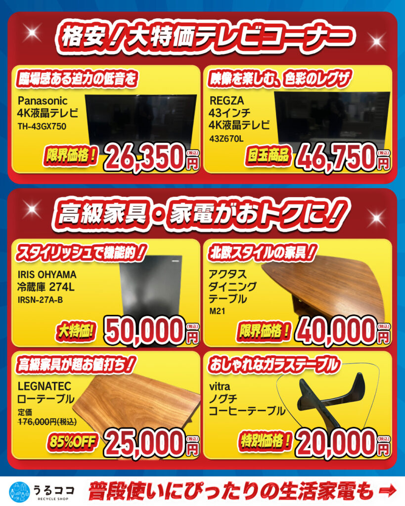 うるココ家具家電「大阪一格安」で販売!BIG SALEを開催!in大阪-平野区